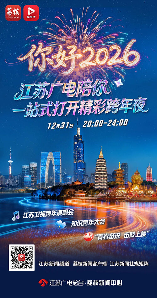 除備受矚目的《更好2026江蘇衛(wèi)視跨年演唱會》外,當晚20:00江蘇新聞頻道同步荔枝新聞、ai荔枝推出逾4小時的特別直播節(jié)目《你好,2026—— 一站式打開精彩跨年夜》,直擊江蘇衛(wèi)視跨年演唱會和總臺多個精彩跨年活動,同時與新華日報社、全省十三市兄弟臺等媒體協(xié)同聯(lián)動,深入南京湯山江蘇園博園、蘇州寒山寺等地標,走進城市街巷與煙火市集,全景式、多維度呈現(xiàn)江蘇各地迎新活動的蓬勃人氣與文化魅力,生動繪就一幅融合傳統(tǒng)底蘊與現(xiàn)代活力的“江蘇跨年夜畫卷”。